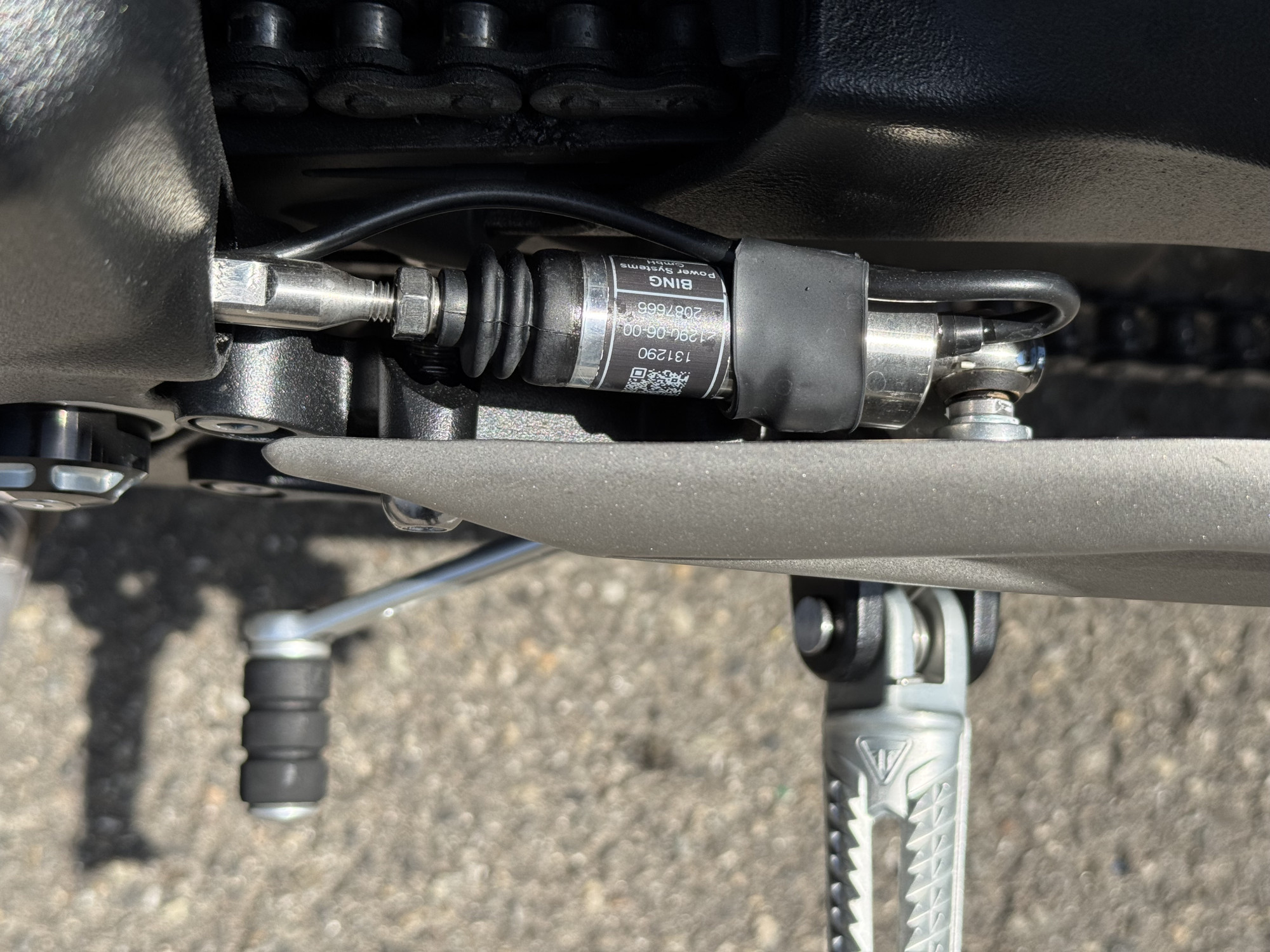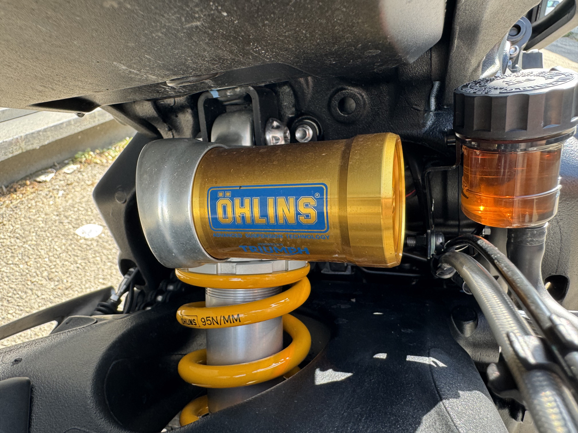 - Suspension arrière : Amortisseur Öhlins STX40 avec réservoir piggyback, entièrement réglable, débattement de 131 mm