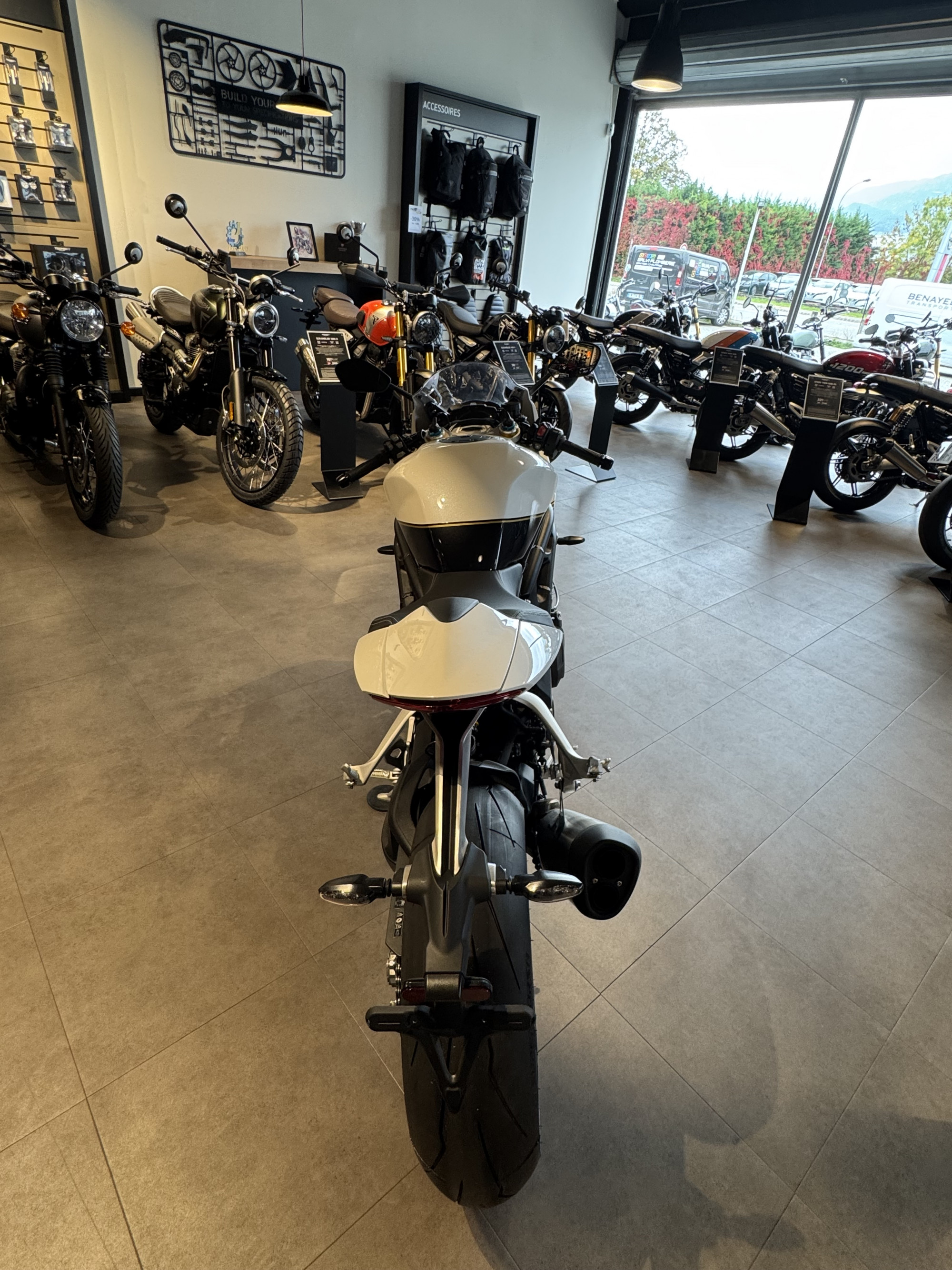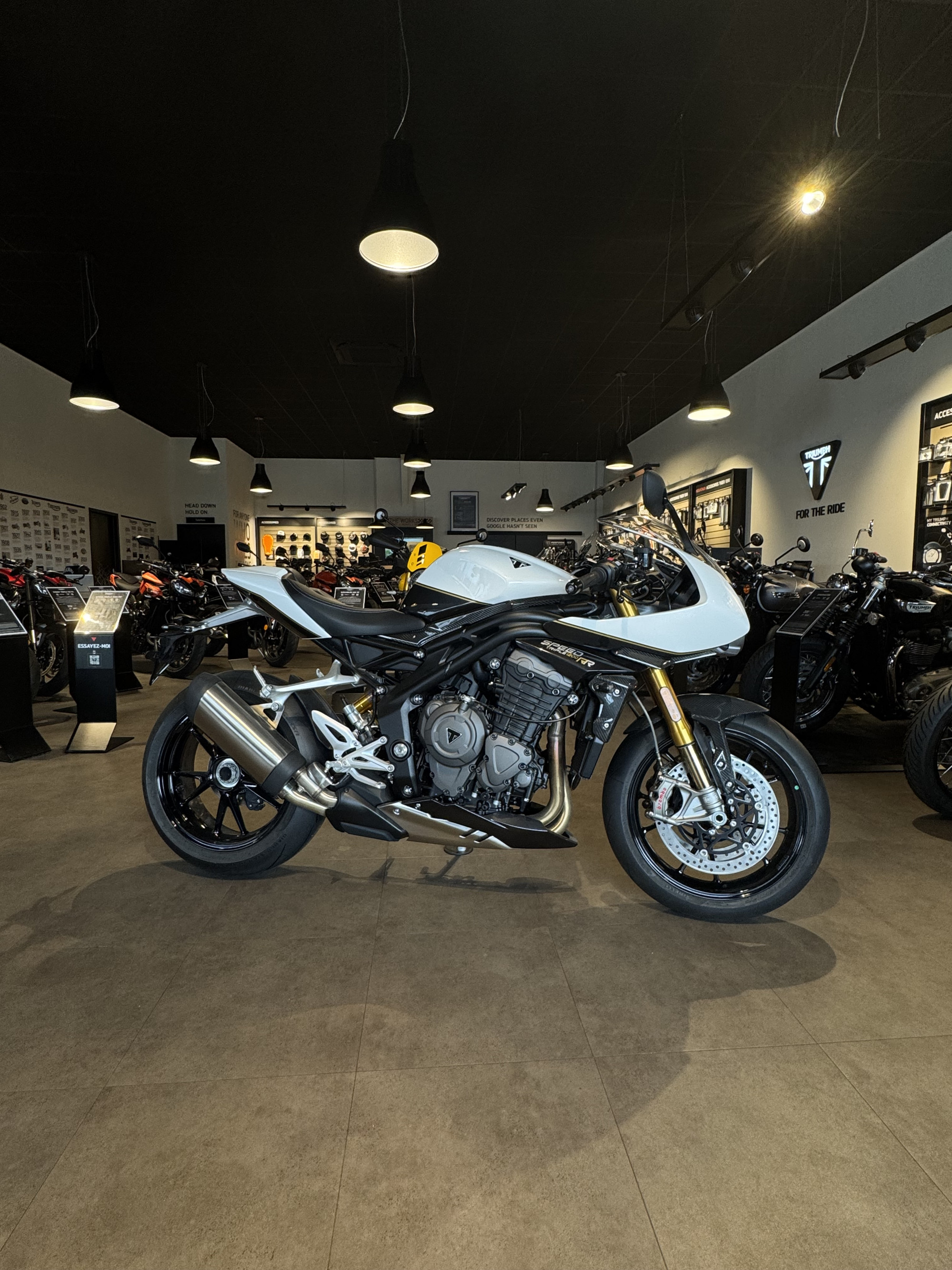 TRIUMPH chambery, votre concessionnaire exclusif TRIUMPH pour la savoie, vous propose à la vente cette TRIUMPH SPEED TRIPLE 1200 RR, coloris CRYSTAL WHITE.