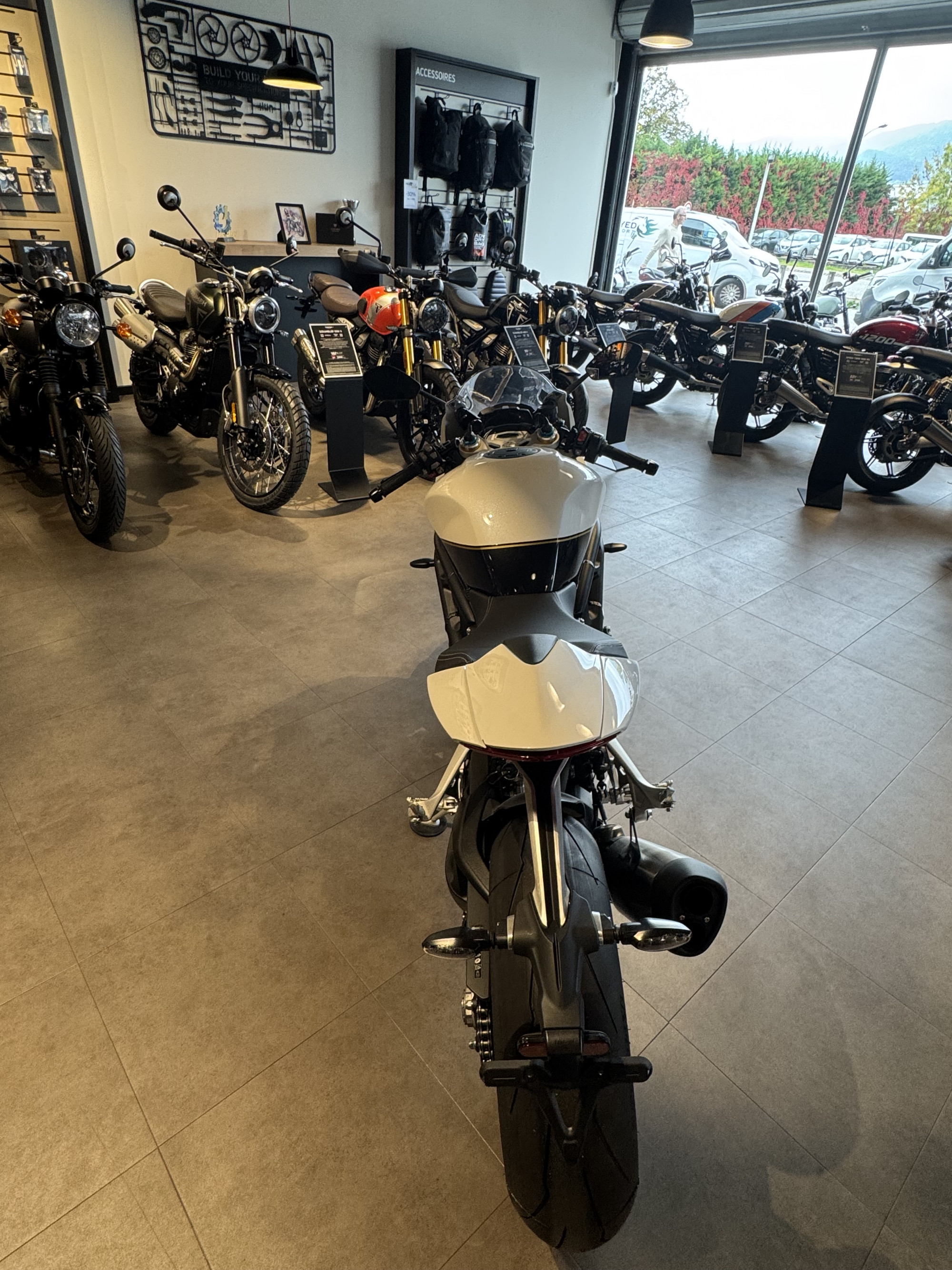 TRIUMPH chambery, votre concessionnaire exclusif TRIUMPH pour la savoie, vous propose à la vente cette TRIUMPH SPEED TRIPLE 1200 RR, coloris CRYSTAL WHITE.