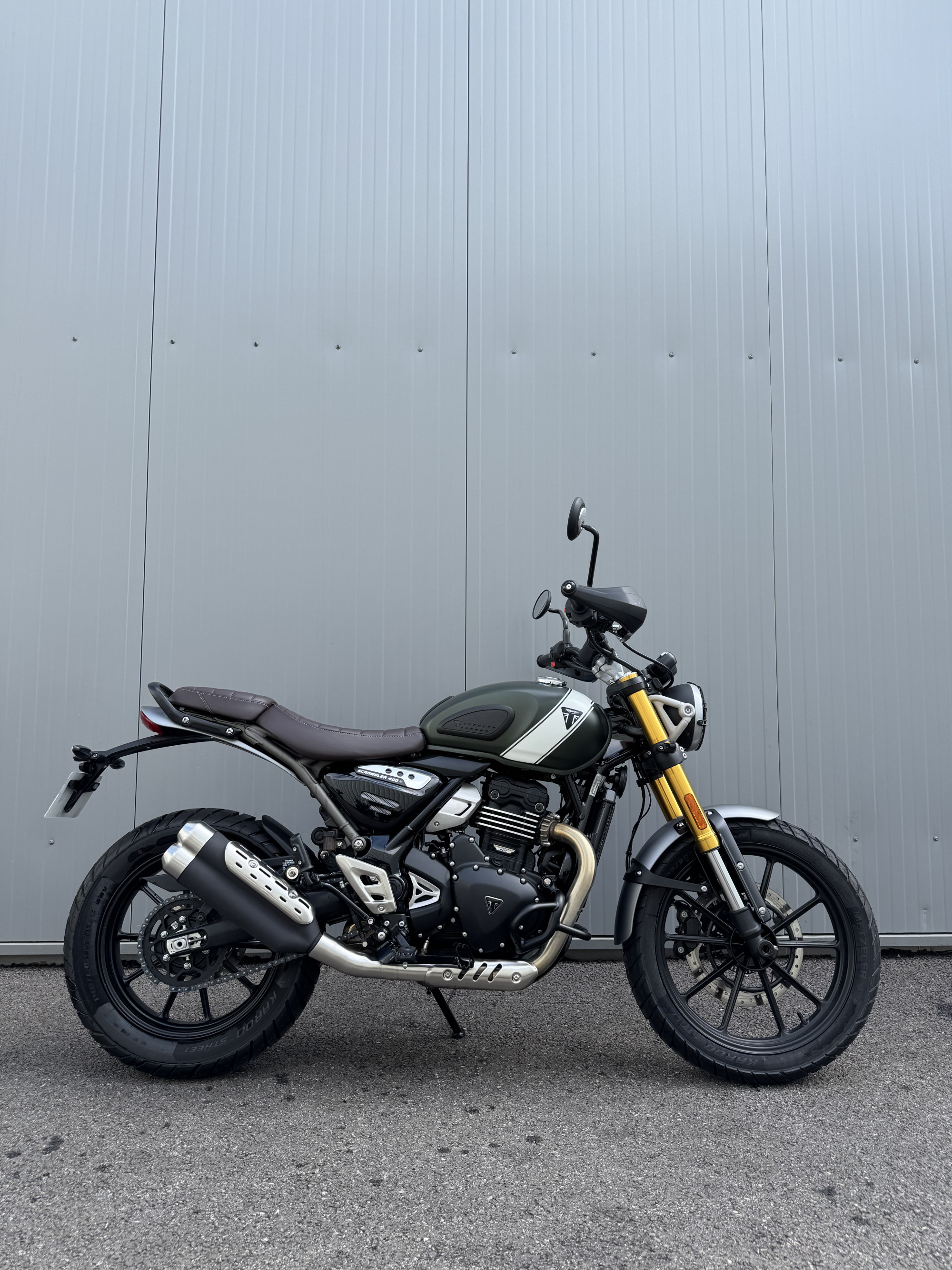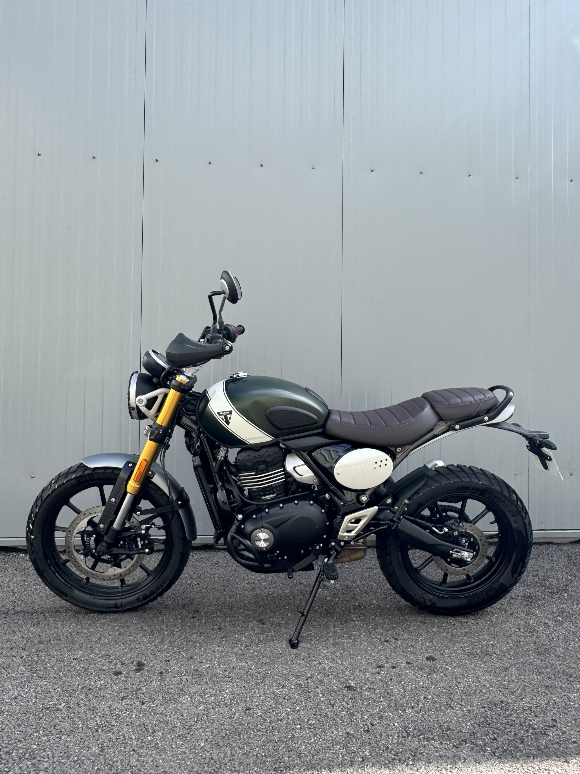 Moto feeling 73, votre concessionnaire exclusif TRIUMPH pour la Savoie, vous propose à la vente cette TRIUMPH SCRAMBLER 400 X coloris "Matt Kaki Green". Kilométrage certifié.
