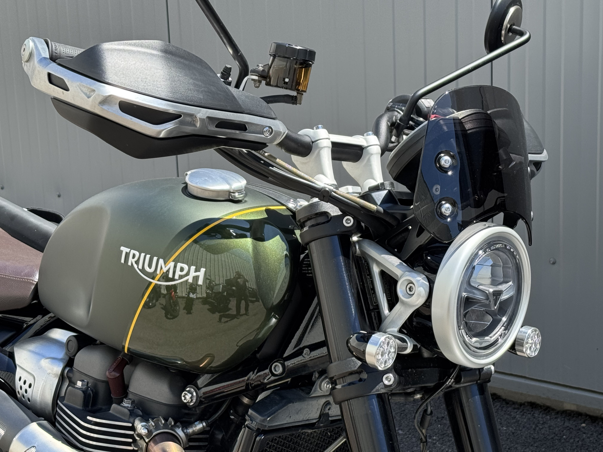 Moto feeling 73, votre concessionnaire exclusif TRIUMPH pour la Savoie, vous propose à la vente cette TRIUMPH SCRAMBLER 1200 XC, coloris Kaki Green and Brooklands Green.